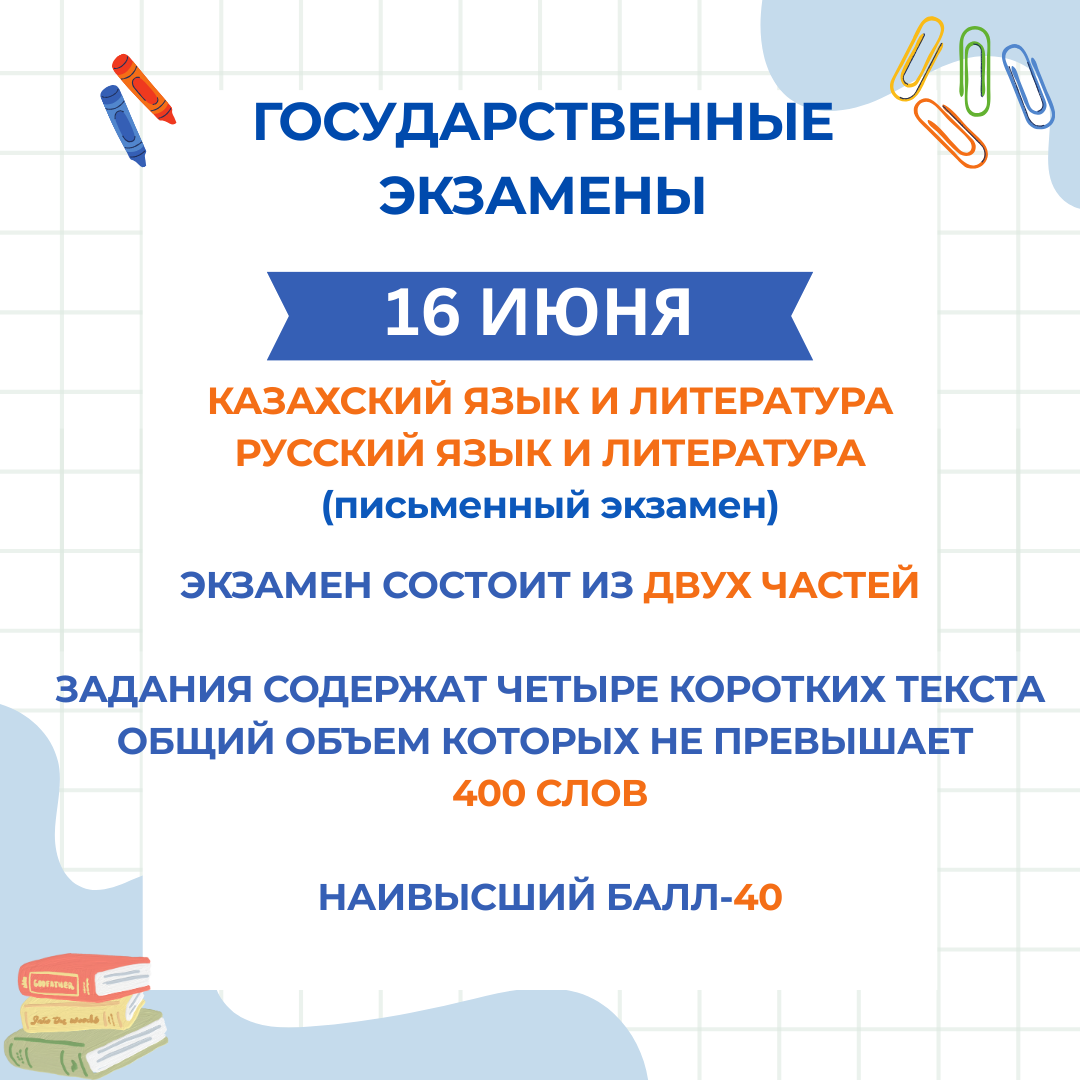 11 сынып оқушыларының назарына! Мемлекеттік емтихандар туралы ақпарат.